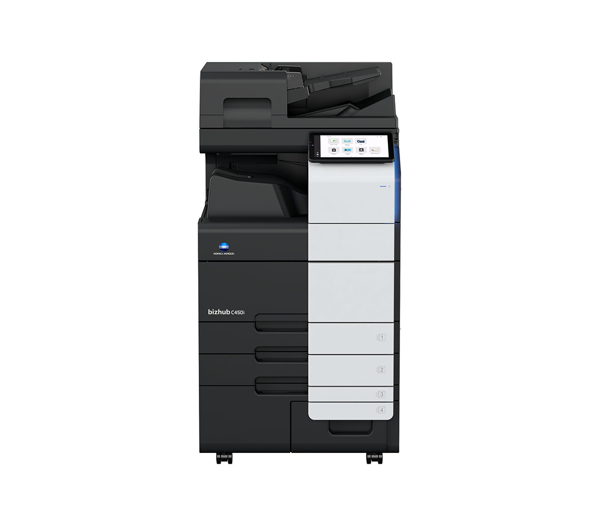 柯尼卡美能达C450i,中速彩色复印机,打印复印速度45页/分钟,扫描速度单面140页/分钟,双面280页/分钟,8GB内存,256GB固态硬盘,标配2-4纸盒,广州复印机租赁价格400元/月起,碳粉零件维修保养全包,叫修2个工作小时内上门,当天叫修当天上门,无法维修的免费换机。联系陈经理18825155713.
